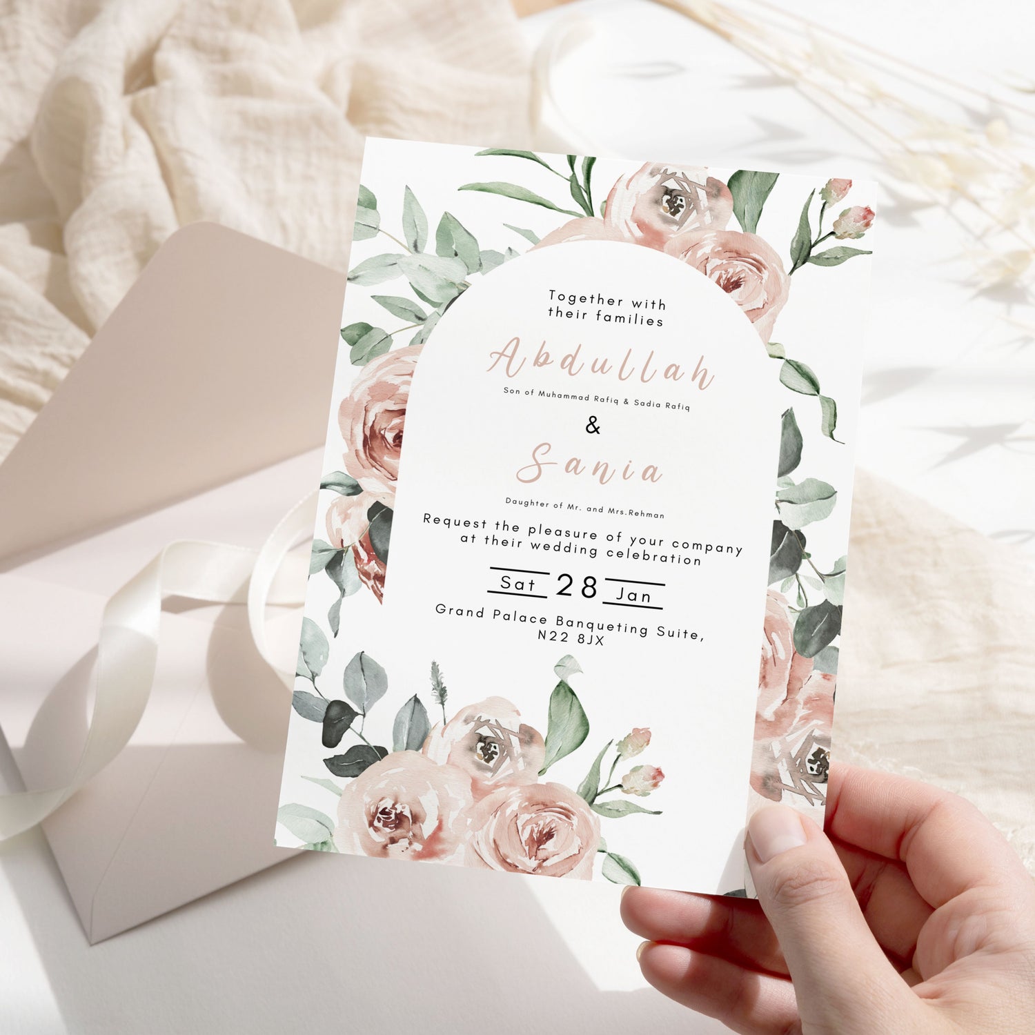 Introducing our Nikkah Digital Wedding Invitation. Digital Wedding Invitations are a perfect modern alternative to the traditional paper wedding invitations. If you're looking for a cheap, eco-friendly yet modern and elegant way to send wedding invitations then these are the perfect alternative! You can customize the invitations completely by adding music, additional pages and you can even opt for a completely custom design via our custom design enquiry form.